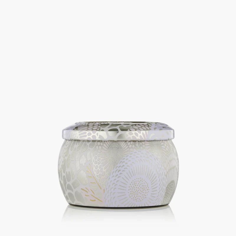 La exclusiva mezcla de cera de coco de Voluspa se presenta en un recipiente metálico de 4oz con diseño de japónica y una tapa a juego que mantiene la vela libre de polvo cuando no se usa. Su única mecha permite disfrutar de la fragancia durante 25 horas. Familia de fragancias: Gourmand