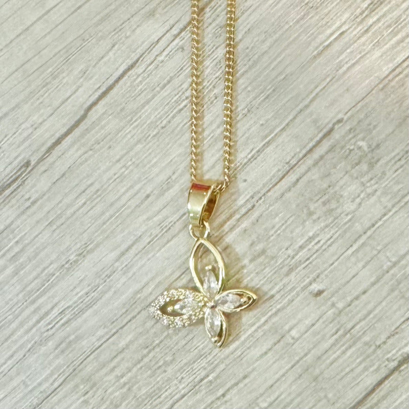 Collar de acero bañado en oro de 14k regulable con dije de acero bañado en oro de 14K de mariposa con strass