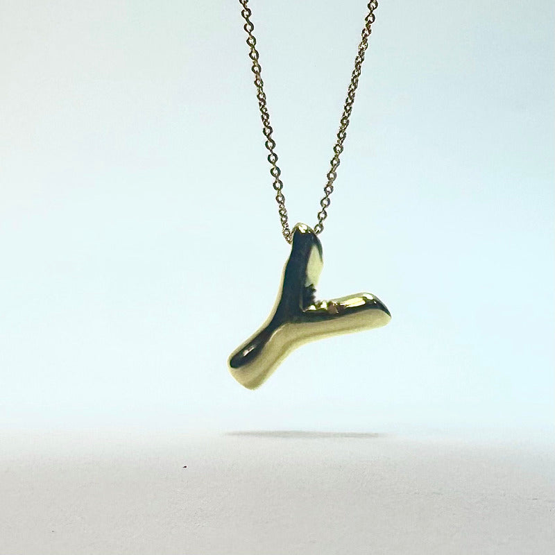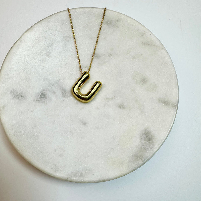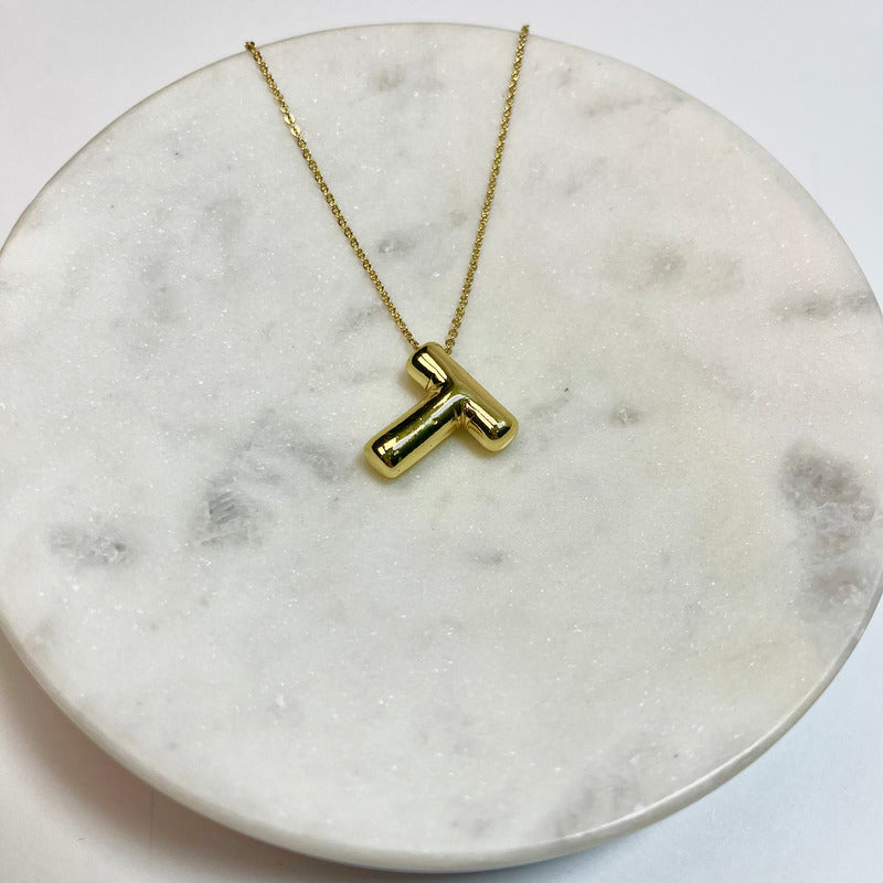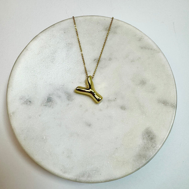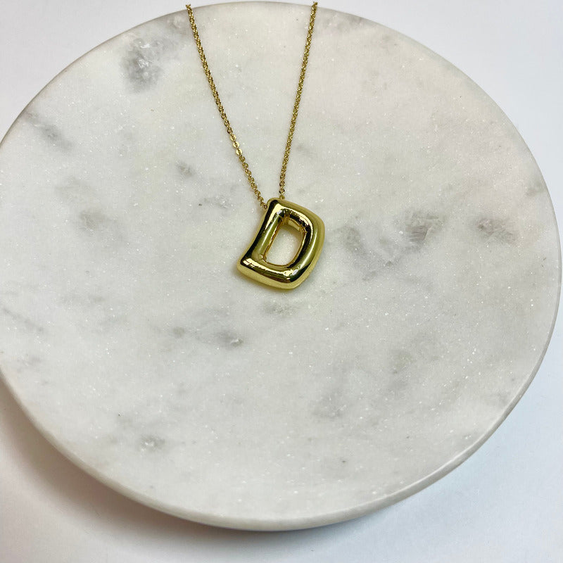 Collar con cadena regulable de Acero Inoxidable bañado en oro de 14k y dije de acero inoxidable bañado en oro de 14K