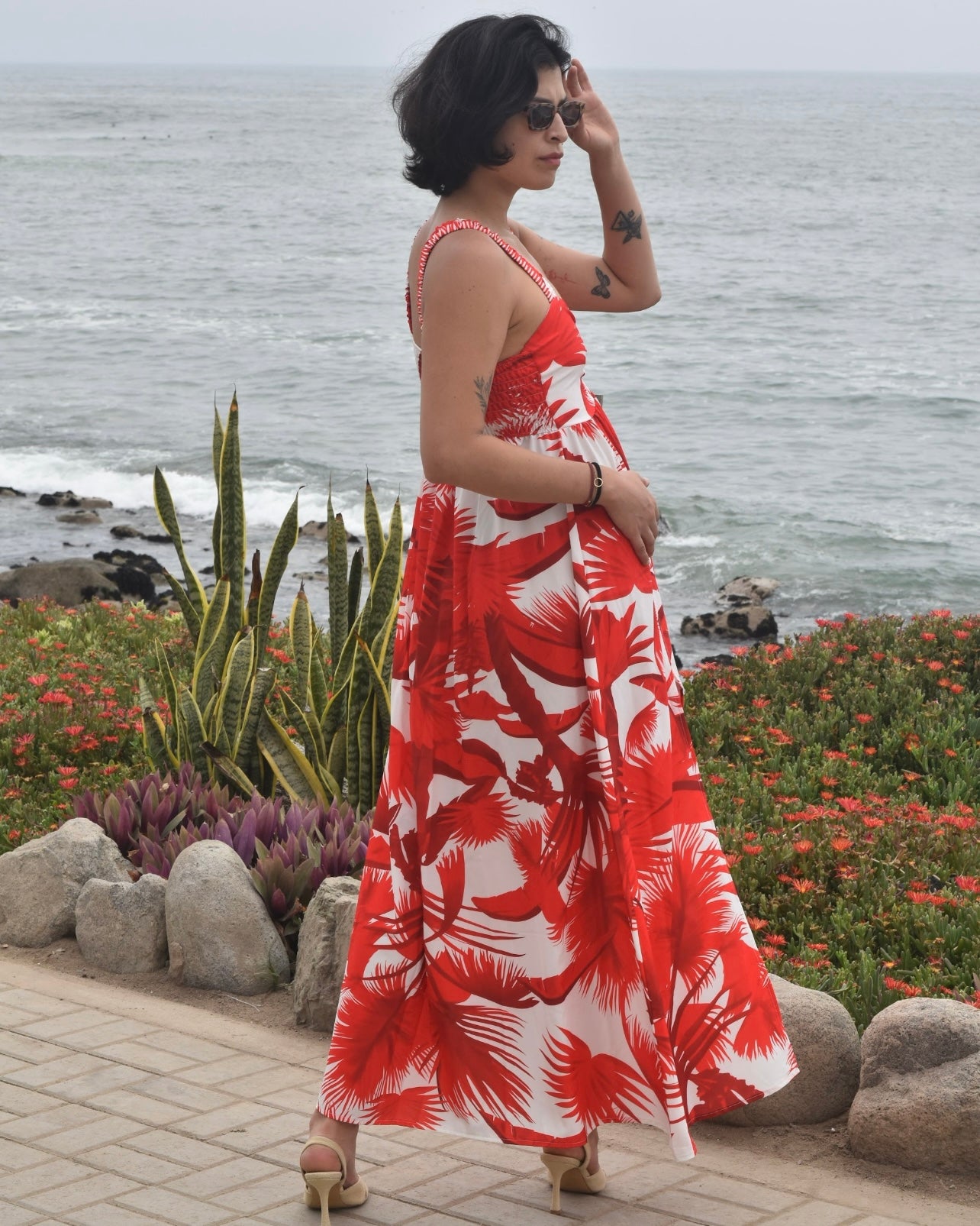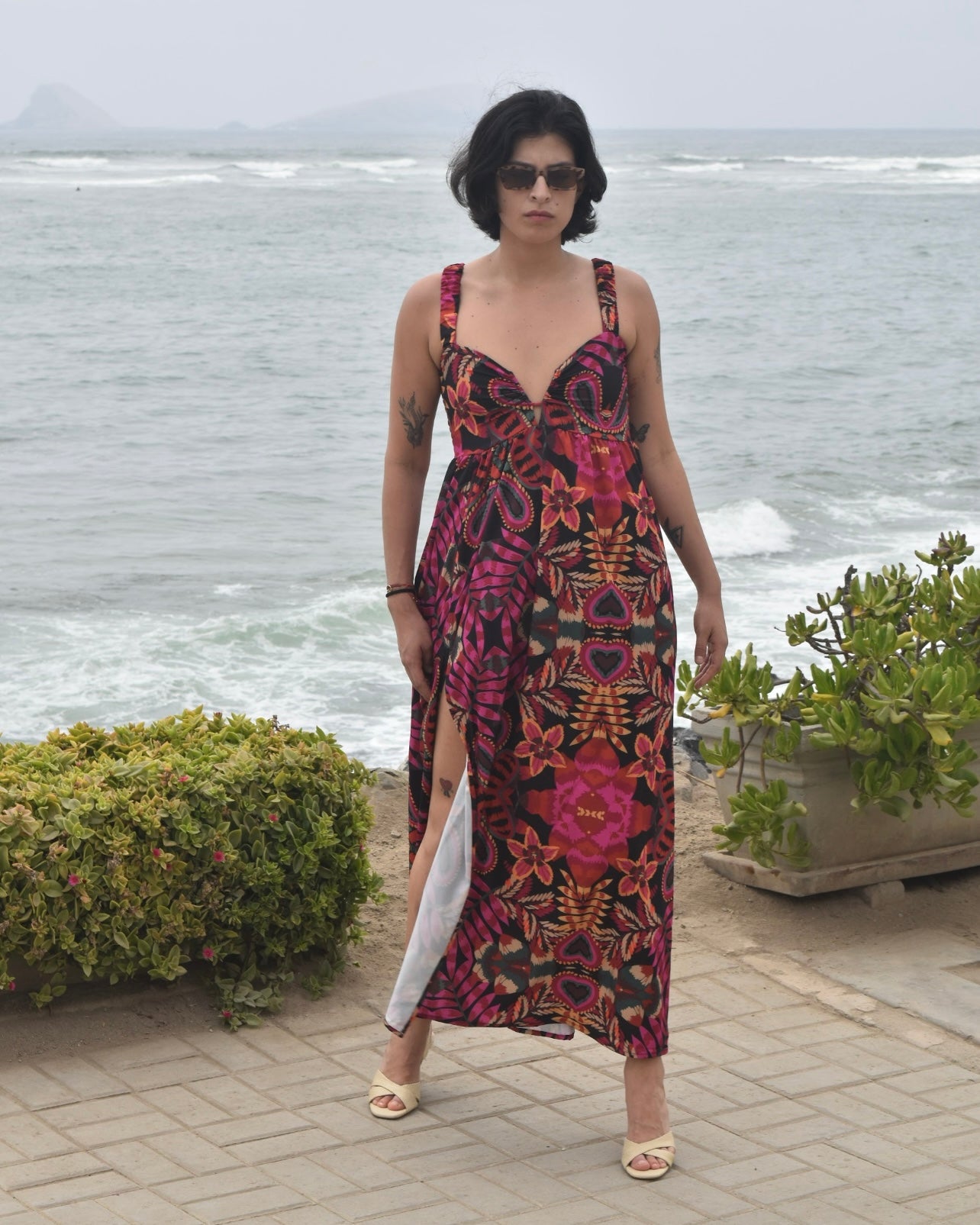 Nuestro vestido, combina un estampado vibrante con un escote en U que realza delicadamente el busto sin perder frescura. Su caída fluida y la abertura frontal crean un movimiento ligero y favorecedor, mientras los tirantes anchos aportan soporte y un look moderno. Ideal para días soleados, salidas casuales o cualquier ocasión donde quieras sentirte femenina, segura y llena de energía. Una pieza que ilumina tu estilo al instante.